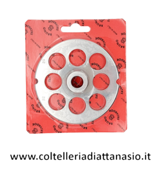 Coltello tritacarne Bruno Salvador, realizzata in acciaio INOX cementificato dalla durezza superiore rispetto ai classici in acciaio al carbonio. Si consiglia di usare la controparte INOX Salvador insieme a questa piastra, in modo da non avere problemi data la differenza di durezza di acciaio