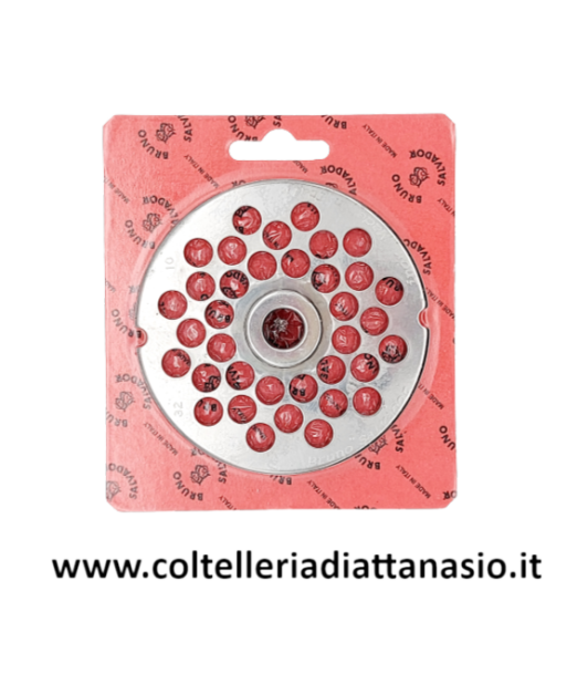 Coltello tritacarne Bruno Salvador, realizzata in acciaio INOX cementificato dalla durezza superiore rispetto ai classici in acciaio al carbonio. Si consiglia di usare la controparte INOX Salvador insieme a questa piastra, in modo da non avere problemi data la differenza di durezza di acciaio