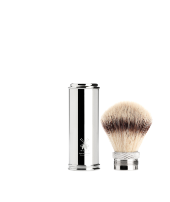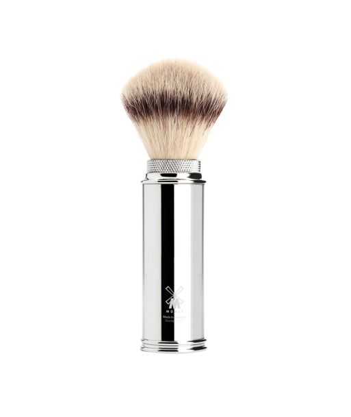 Con il pennello da barba da viaggio MÜHLE, puoi continuare a goderti il tuo rituale mattutino anche quando sei in viaggio. Le setole in Silvertip Fibre® offrono una qualità eccezionale, asciugandosi rapidamente e garantendo una durata superiore rispetto ai capelli naturali. Un connubio perfetto tra funzionalità e bellezza, ideale per chi cerca il massaggio sulla pelle.