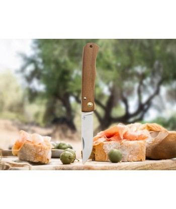 Il manico in faggio rosso termotrattato, con dettagli dorati su distanziali e vite pivot, dona un’eleganza tradizionale. Dotato di foro in ottone per cordini. Perfetto come primo coltello da regalare.