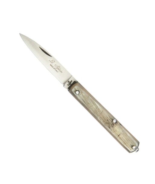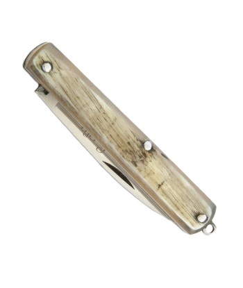 Il manico in corno antico, lavorato a mano, offre una presa sicura e confortevole, con un design elegante e distintivo che esalta la bellezza naturale del materiale