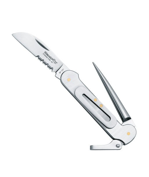 Questo modello Black Fox BF-237 è un coltello da barca a vela compatto e resistente, ideale per uso nautico. Dotato di lama in acciaio inox parzialmente seghettata, punzone scioglinii e chiave per grilli, è perfetto per ogni evenienza a bordo.