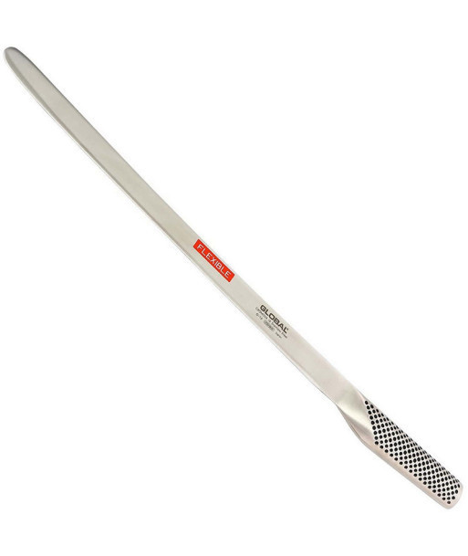 Il coltello Global da Salone è dotato di punta tonda e di una lama flessibile, viene usato principalmente per salmone, tonno e del tradizionale taglio del prosciutto a mano. Non bisogna usarlo però per la pulizia del grasso laterale, in quel caso è necessario un coltello di tipo francese.