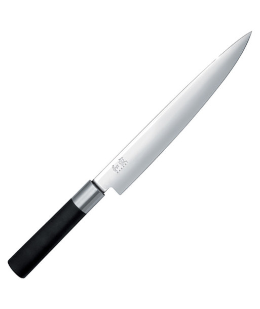 Il Kai Wasabi Slicer o Sujihiki è concepito principalmente per tagli lunghi e precisi di carne e pesce. La lama lunga e stretta è utile per affettare carne o pesce disossato , oppure per sfilettare e spellare il pesce con estrema facilità e velocita.